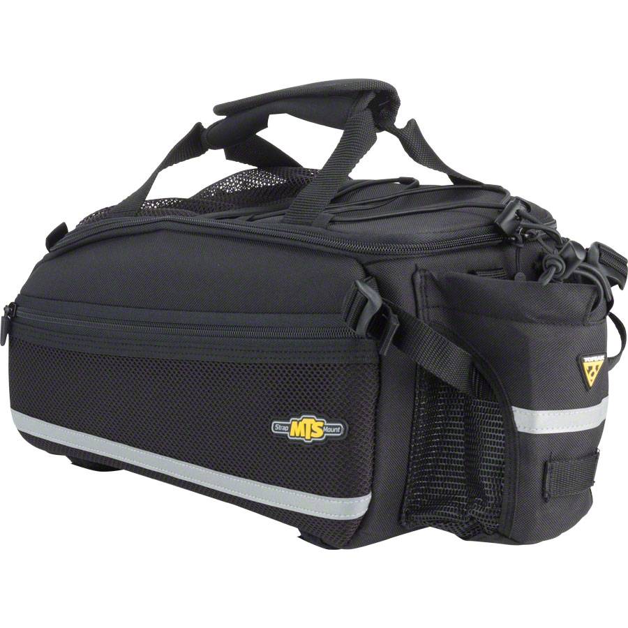 Topeak EX Trunk Bag with strap is manufactured with rigid molded panels and flexible 600 denier fabric for rigidity and water repellency.