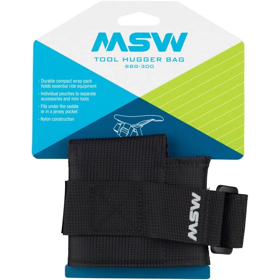Carry just the essential roadside/trailside tools with the MSW Tool Hugger. Sleeves are designed to fit tire levers, CO2, inflator, patch kit, multi-tool and a tube. Works well standard saddle rails, or just toss it into a jersey pocket.