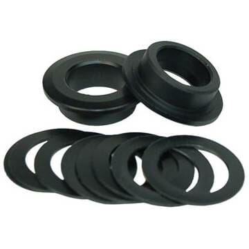 Machined engineering-grade Delrin inserts for adapting bottom brackets to a different type of crankset spindle.