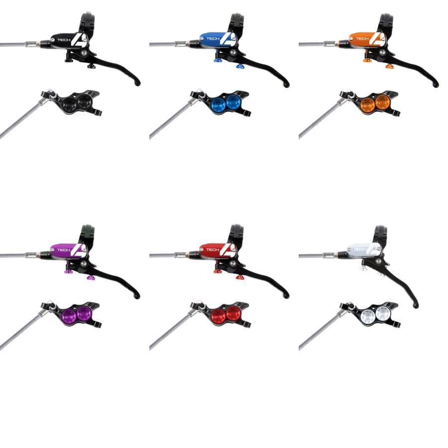 The all new Tech 4 E4 builds on our 25+ years’ experience designing and manufacturing hydraulic brake systems. The Tech 4 uses all new internal sealing for reduced friction and the pivot spins on roller bearings, allowing the spring rate to be reduced. The lower spring rate in turn gives a lighter lever action, reducing rider fatigue and keeping our legendary feel and modulation. The updated E4 caliper utilizes hybrid style Stainless steel pistons with a phenolic insert allowing for smoother movement and less maintenance, while still able to manage high temperatures without heat transfer during extreme use.