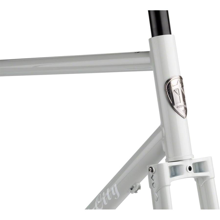 - Flat-mount brakes, front and rear thru-axles, 1-1/8” head tube, All-City Shot Collar, three water bottle mounts