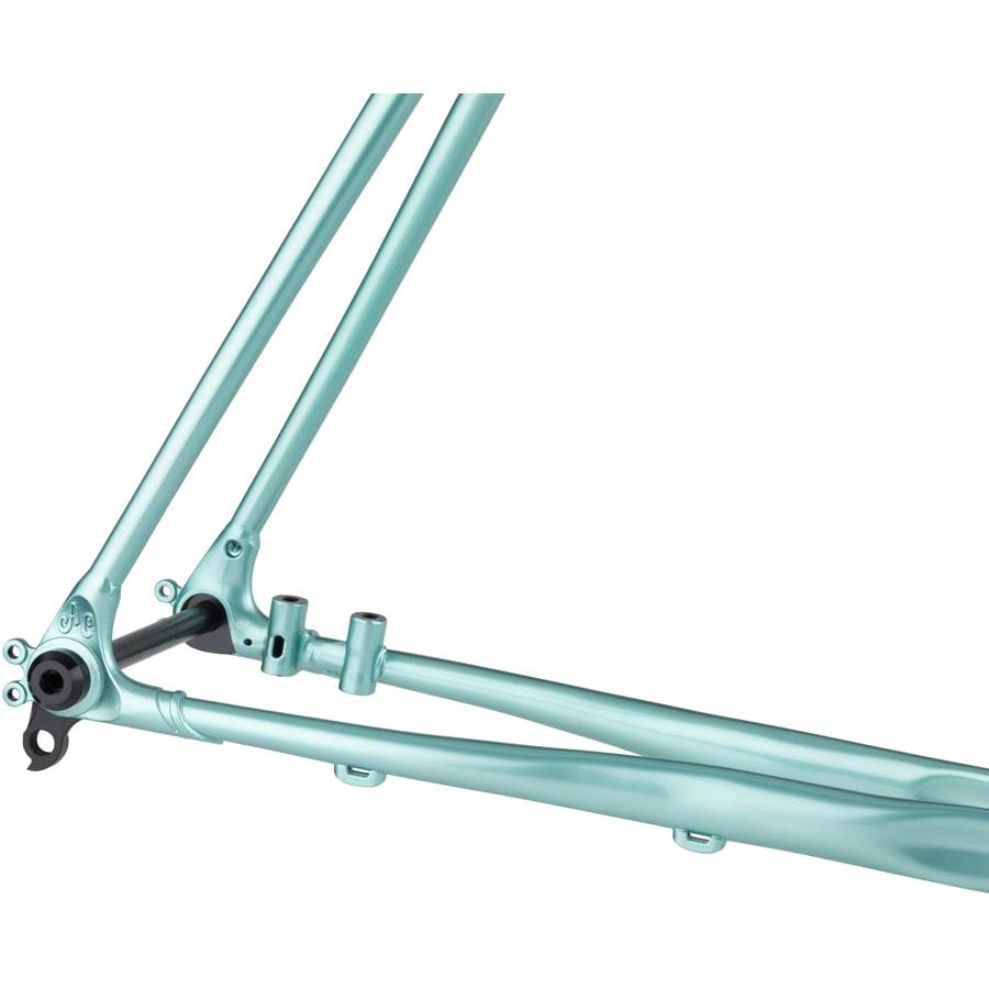 - Signature custom-cast dropout with replaceable derailleur hanger, signature lugged fork crown and custom fork ends, integrated seat collar, pantographed bottom bracket shell, reinforced bottle bosses for three bottle cages