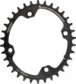 Designed for 104 BCD Mountain Cranksets. The proprietary design has an ovality of 10% and a timing of 112 degrees after top dead center which provide the benefits of an oval ring without the traditional downsides of oval rings. This chainring features the patent pending asymmetrical Drop-Stop tooth design for the best in wear life, mud clearance, and chain retention.